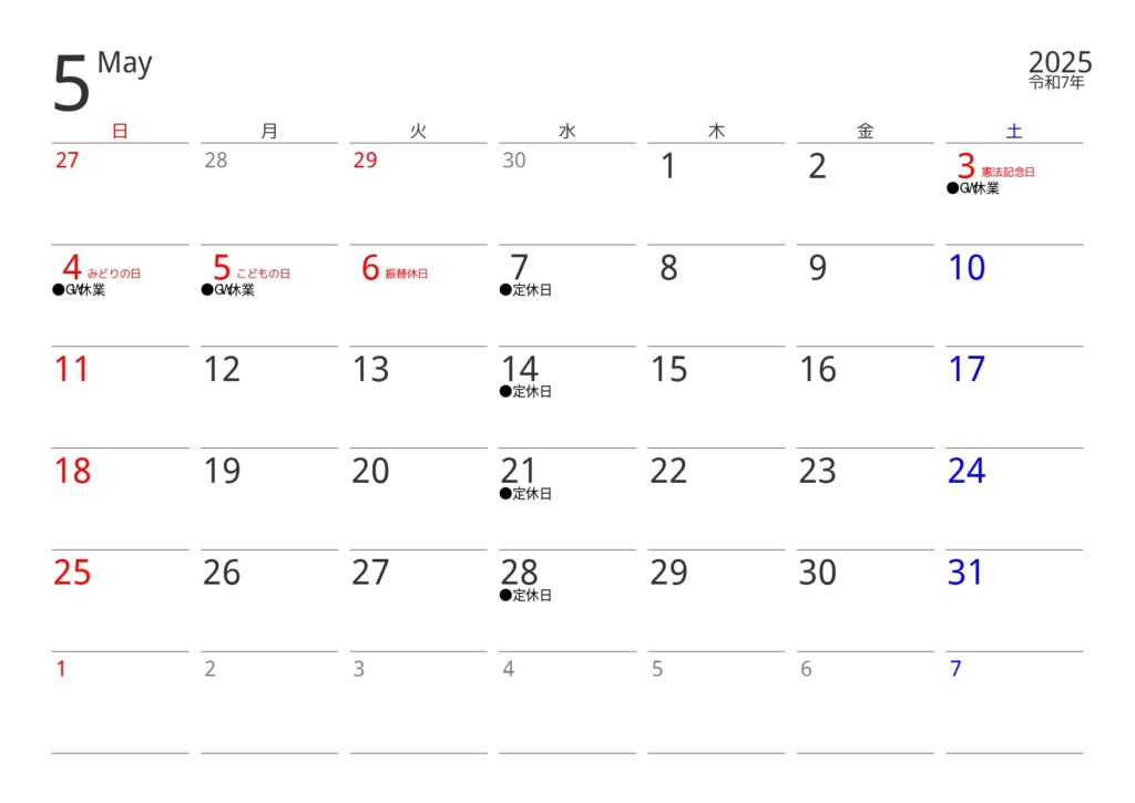 5/3~5/5はお休みです。