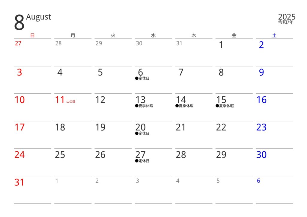 8/13(水)~15(金)まで夏季休暇のためお休みさせていただきます。