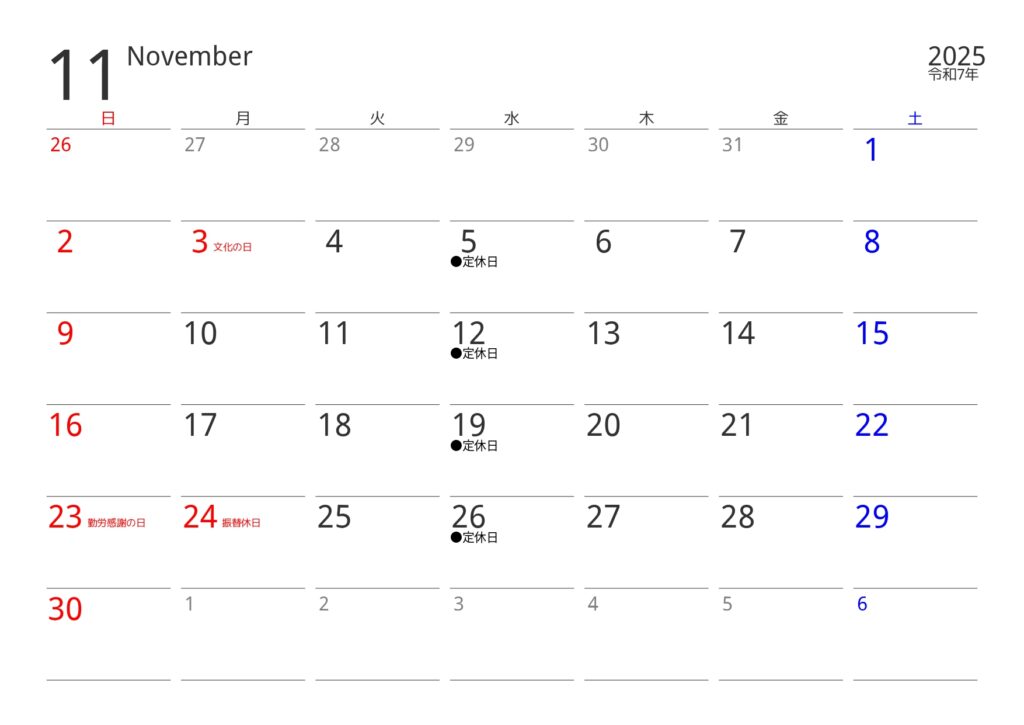 11月は通常通り営業しております。