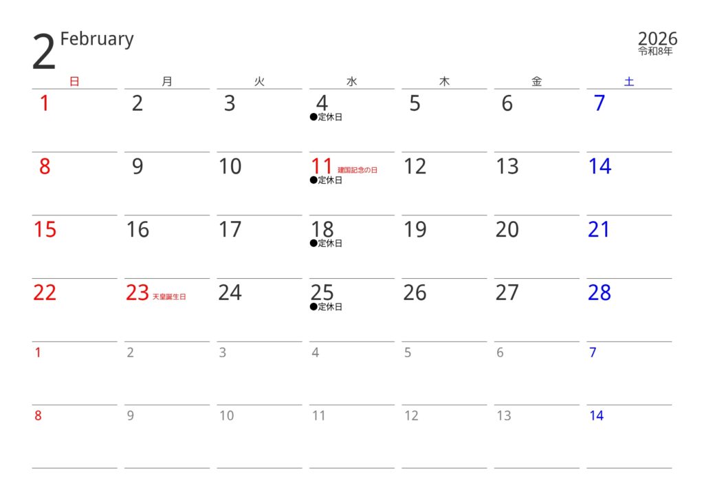 2月は通常通り営業しております。